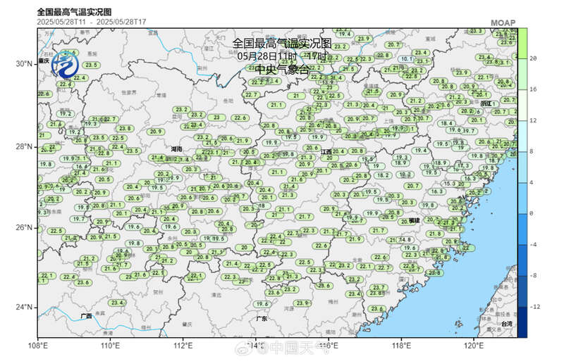 相比之下,南方正在经历今年来最强降雨过程,雨水打压下,气温难有起色。像今天午后,江南一带气温普遍20℃出头,甚至不到,和暖热的北方形成巨大反差。
