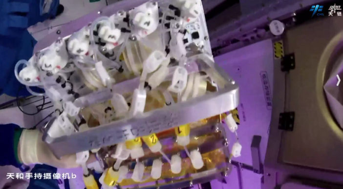 在为期43天的实验中,斑马鱼在空间站成功繁殖产卵。通过天地对比发现,斑马鱼在轨出现背腹面颠倒游泳、旋转运动、转圈等空间运动行为异常现象。这项实验实现了中国在太空培养脊椎动物的突破,创造了国际上空间水生生态系统在轨运行最长纪录。科研人员利用返回的回收水样、鱼卵等样品,结合斑马鱼空间运动行为视频等,可开展空间环境对脊椎动物生长发育与行为的影响研究。