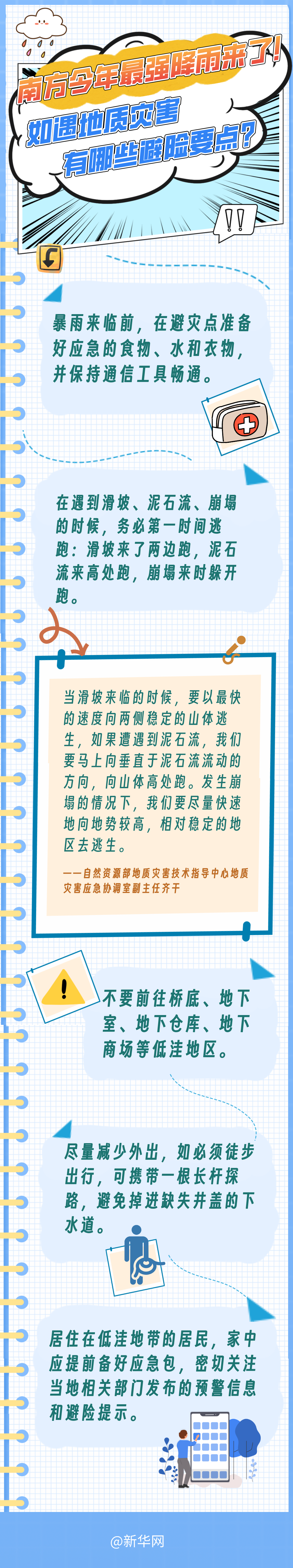 专家提示,强降雨或持续降雨可能引发山体崩塌、滑坡、泥石流、地面塌陷、地面沉降、地裂缝等地质灾害。