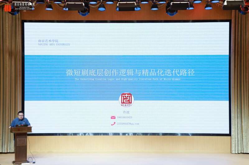 南京艺术学院艺术研究中心副主任许波分享《微短剧的底层创作逻辑与精品化迭代路径》。四川电影电视学院供图
