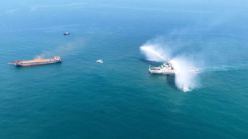 其间,现场指挥组协调固定翼飞机、无人机对事发船舶遇险情况进行勘察,协调专业救助船“北海救111”轮靠近遇险船舶,释放救助艇海面搜寻救助落水人员,释放救生吊篮等装备对遇险人员实施紧急转移。同时,“北海救111”轮启动消防炮实施船舶喷淋灭火,随后为其带缆,拖离港口航道,确保航道畅通。