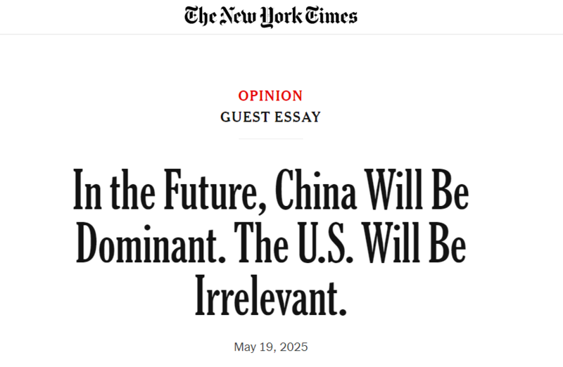 文章认为,中国的政策展现了强大的战略眼光。相比之下,美国的短视政策却在削弱其竞争力。特朗普政府对关税的执着并未能迫使中国改变其行之有效的经济政策,反而限制了美国企业进入全球市场和供应链,削减了研发经费,导致人才流失。