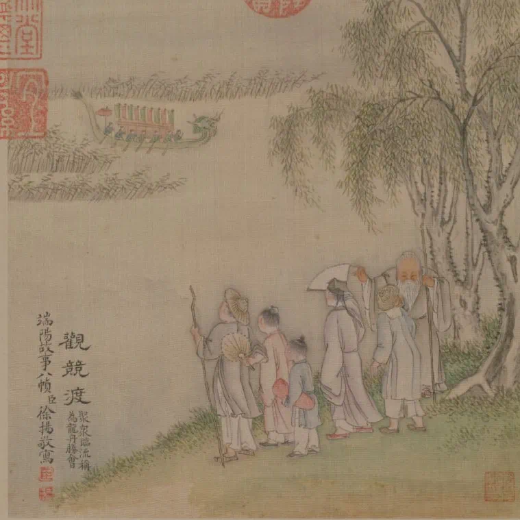 △《观竞渡》,题:“聚众临流称为龙舟胜会。”