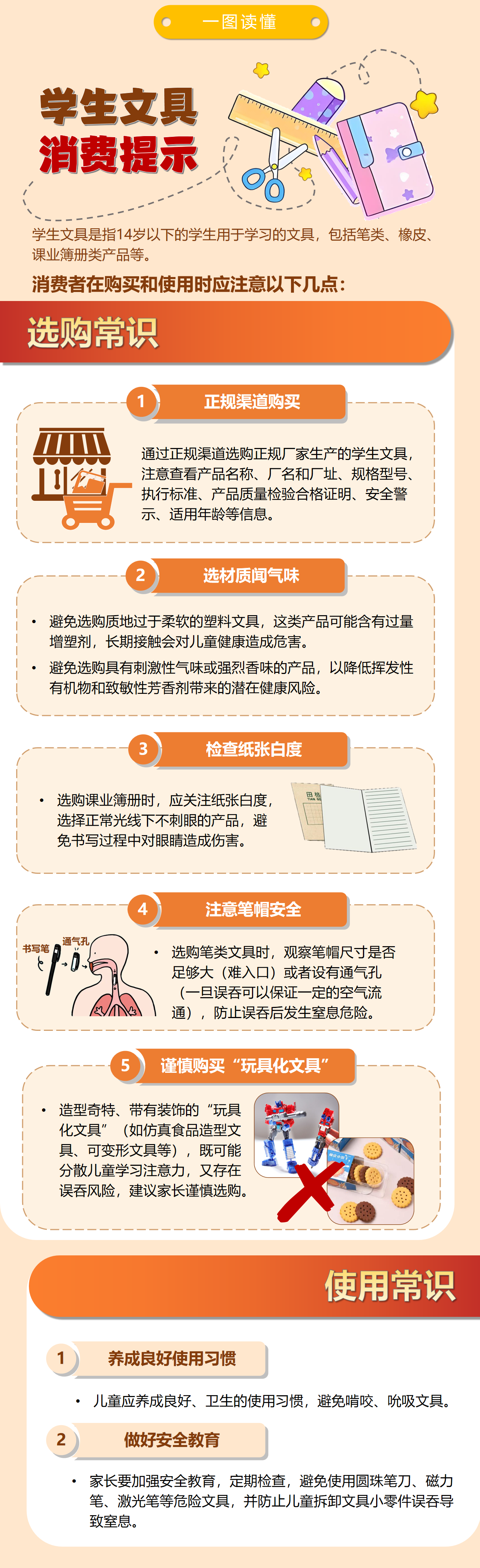 市场监管总局提醒消费者,应通过正规渠道购买儿童用品,优先选择具有良好市场口碑的品牌。同时,要注意仔细查看产品标签标识,确认厂名厂址、执行标准、适用年龄、警示标语等信息。