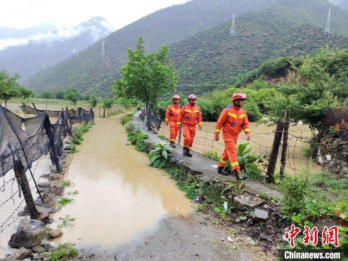 5月31日,迪庆消防队员巡查当地受灾情况。迪庆消防 供图
