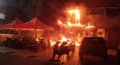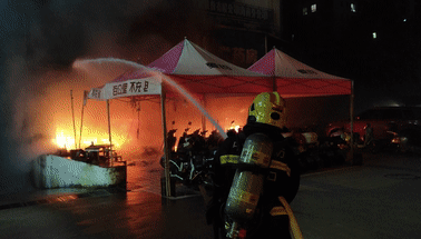 一电动自行车店铺着火