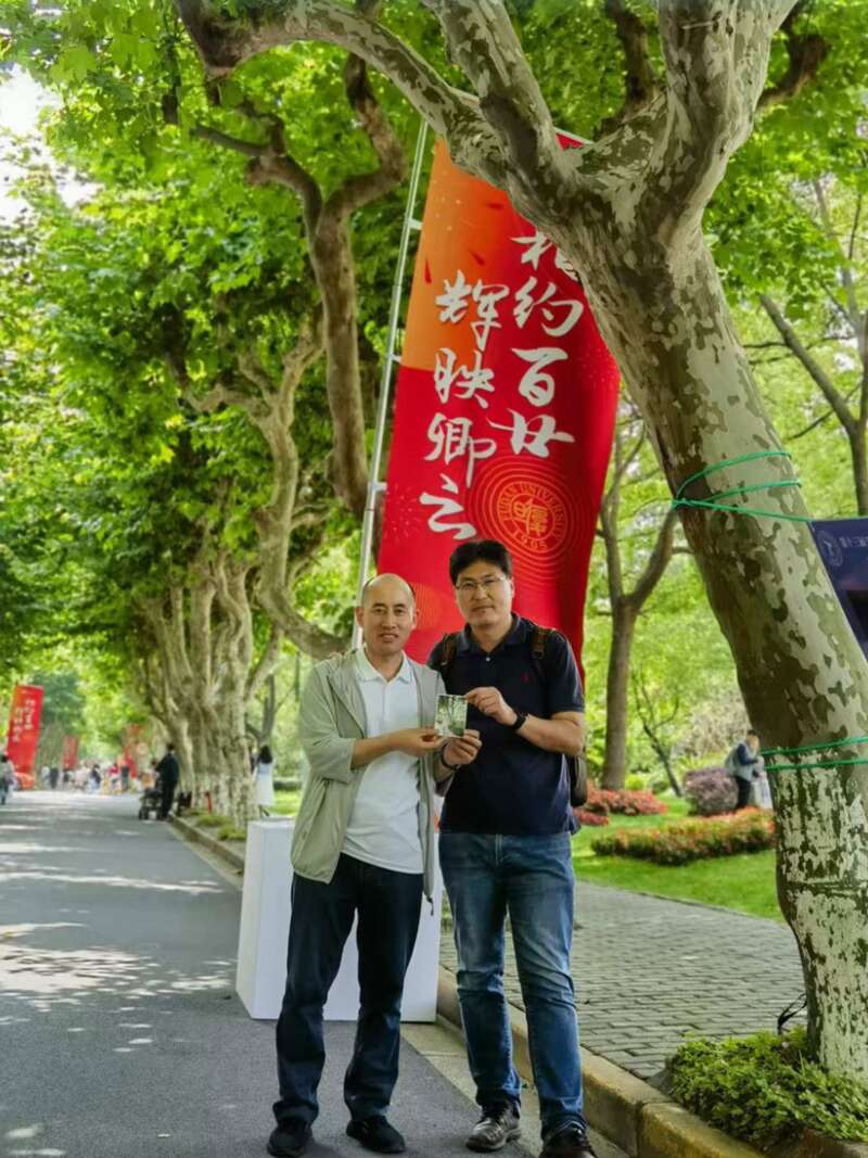 5月24日,曹国相与当年资助自己的复旦学生苏志强一起在复旦大学校门口合了一张影。25年前,与他年龄相仿的复旦学生苏志强在自己也并不富裕的情况下,给他送去了一笔笔捐款、一封封为他加油鼓劲的信。这些钱和信,支撑着这个西吉少年后来考上吉林大学。