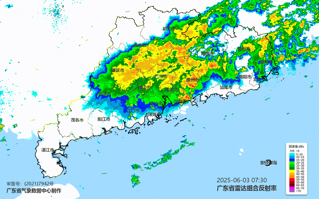 今天(6月3日)早高峰时段,韶关、河源、梅州及珠三角市县有雷雨云团活动,广东部分地区出现轻雾或雾,从化、新丰、揭西、翁源、连平能见度低于200米,雨雾天行驶,注意交通安全。