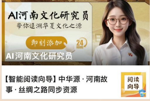 “中华源·AIGC文化出海领航计划”项目依托出版社此前出版的“中华源·河南故事”中外文系列丛书,创新性地采用AIGC(人工智能生成内容)数字人伴读技术,为用户提供多元化、多模式的数智阅读体验。通过AIGC技术生成的数字人伴读服务,读者能够更深入地了解和学习中华文化的精髓,更深刻感受河南作为中华文明重要发源地的独特魅力,推动中华文化的海外传播力和影响力。
