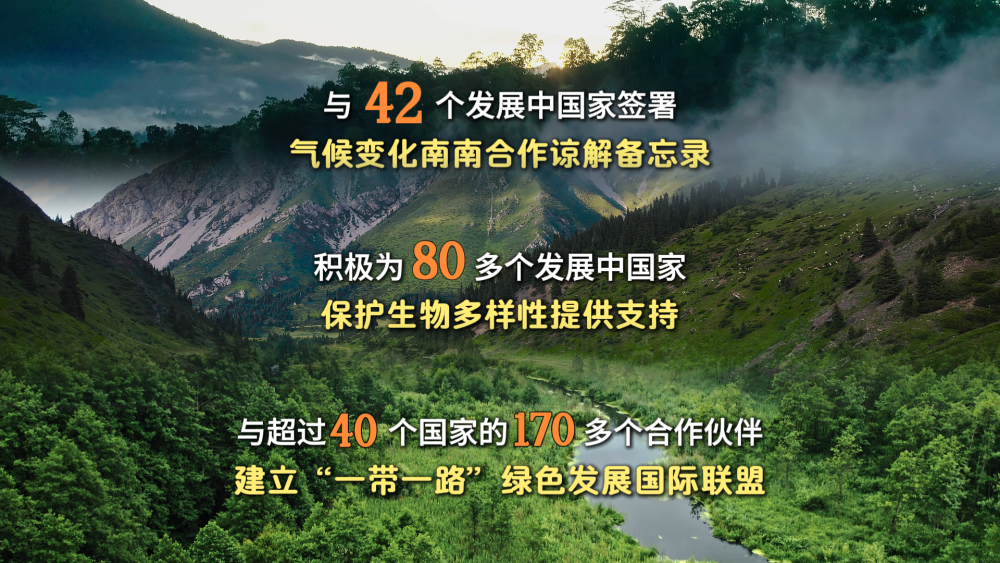 与42个发展中国家签署气候变化南南合作谅解备忘录,在南南合作框架下积极为80多个发展中国家保护生物多样性提供支持,与超过40个国家的170多个合作伙伴建立“一带一路”绿色发展国际联盟……中国智慧、中国技术、中国行动,正为推动世界绿色发展提供源源不断的重要助力。