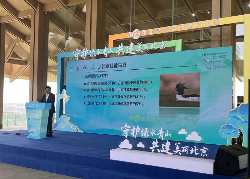 中国青年报客户端北京6月5日电(中青报·中青网记者 张艺)“刚刚听到了大杜鹃的叫声。”北京师范大学教授邓文洪是鸟类保护专家,今天他在六五环境日北京主场活动上发言时,鸟儿飞到他的身后。邓文洪说,京津冀鸟类超过600种,占全国鸟类种数约40%,其中候鸟有420余种,“京津冀合力为它们打造了生命之道和绿色之道”。