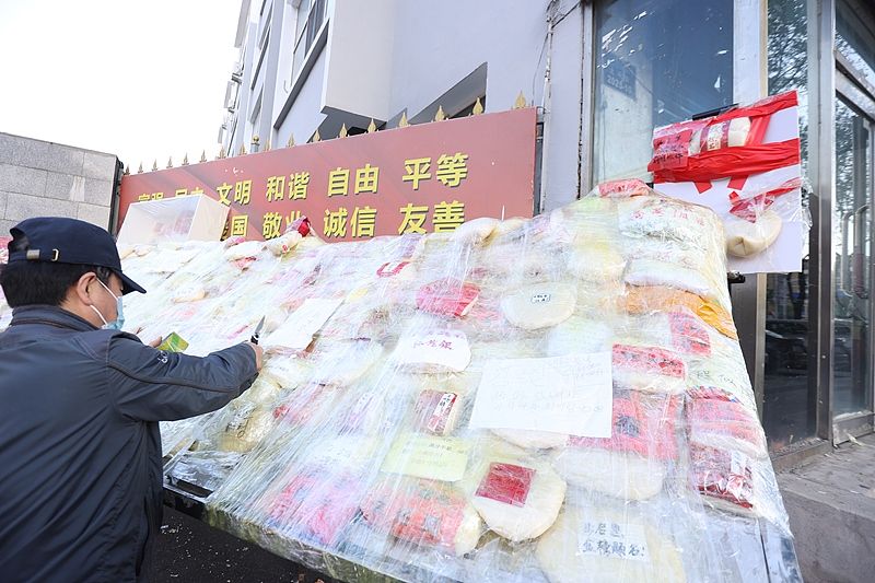 2025年6月7日,北京,高考首日考点前家长穿旗袍为考生加油。