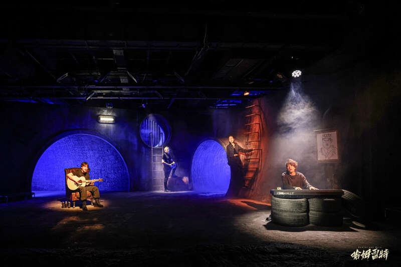 作为青春版《哈姆雷特》,该剧还融入了多种现代艺术元素。电钢琴、吉他、非洲鼓等演奏的原创音乐,以及富有节奏感的轻声吟唱贯穿全剧,不仅营造出独特的戏剧氛围,也为古老故事注入了现代活力。滑板、蹦床、楼梯等道具的运用,既增添了表演的灵动与趣味,也为角色行动和情感表达提供了更多可能,大大拓展了舞台表现空间。