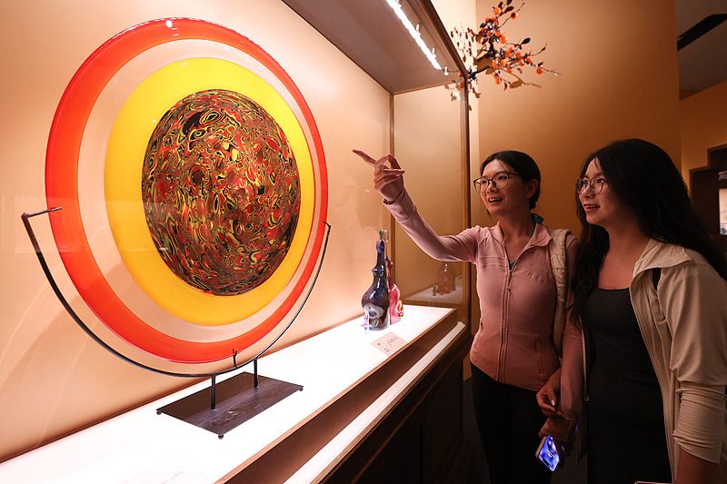 2025年6月10日,北京,中国国家博物馆,观众在琉光璃彩——淄博琉璃艺术展上观赏作品《韵》。