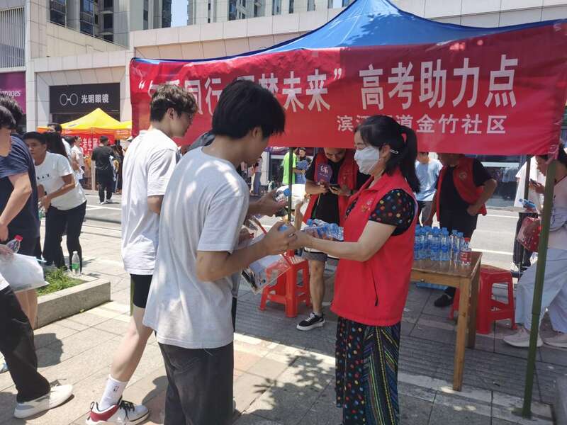 江西吉安滨江街道金竹社区的工作人员在高考前一晚,还在组织社区里的党员、退休干部和退役军人组成志愿服务队,走进沿街商铺、居民小区、建筑工地,逐店逐户地开展禁噪宣传,并对辖区内机动车鸣笛、商户噪声、广场舞噪音及夜间排档噪声等违法行为进行劝导,全力以赴为高考学子保驾护航。