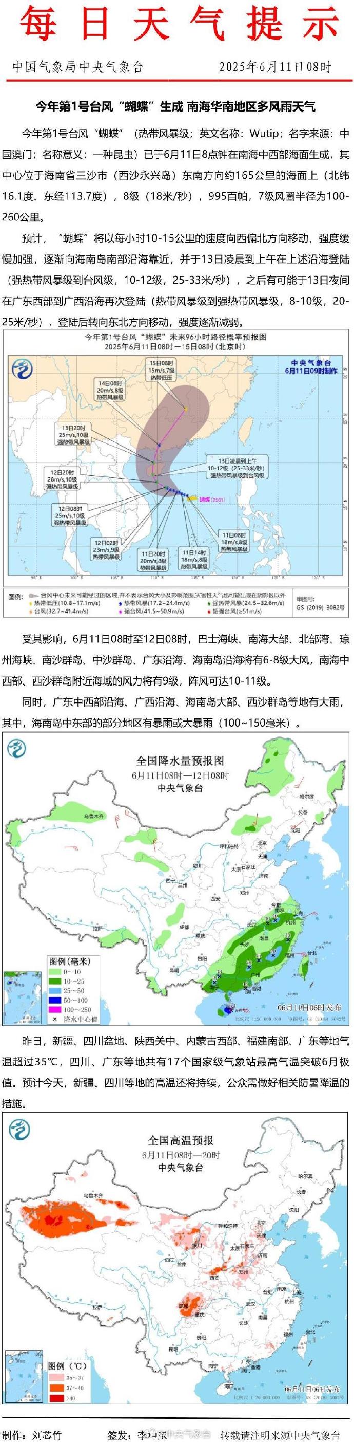 今年第1号台风“蝴蝶”生成 南海华南地区多风雨天气