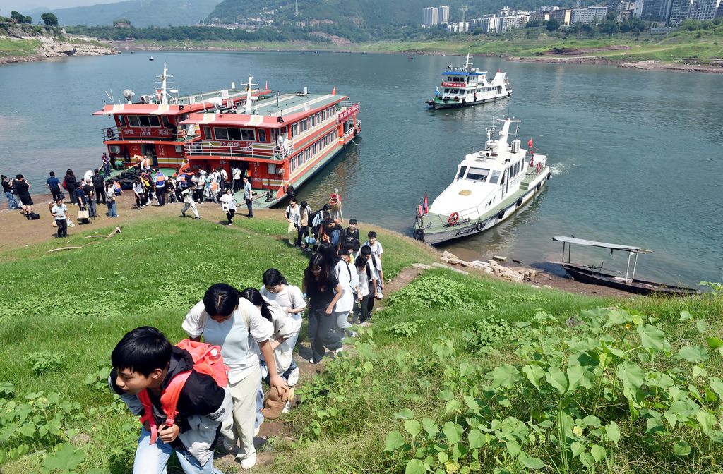 2025年6月11日,重庆云阳县,赶考学生有序下船。法院干警加入“平安中考、绿色中考、健康中考”护考行动,为考生提供服务。6月11日上午,重庆市云阳县故陵中学297名中考生和16名带队老师迎着晨雾,迈出矫健的步伐,登上政府安排的水上“绿色赶考巴士”。从家乡的长江码头出发,经过2小时40分钟的航行,顺利抵达位于新县城北部新区的双江中学考点。沿途及上下船均有专业工作人员及交通执法人员协助指挥、保驾护航,实现了一条持续长达10多年,出入井然有序、迎考平平安安的“水上赶考路”。