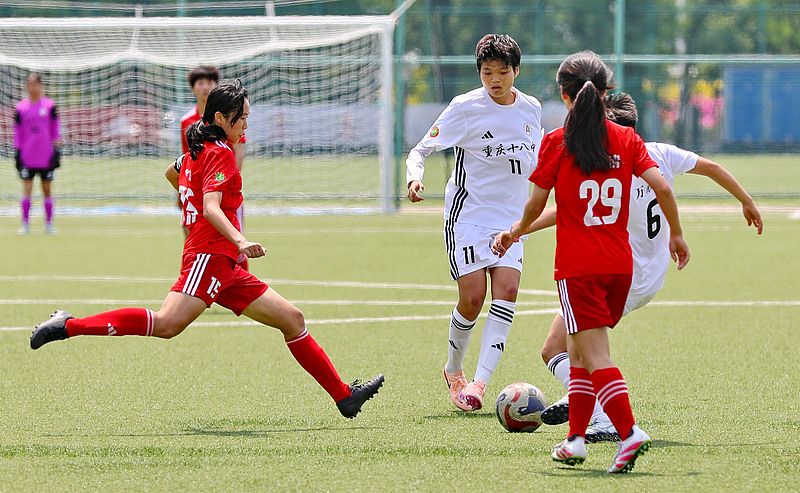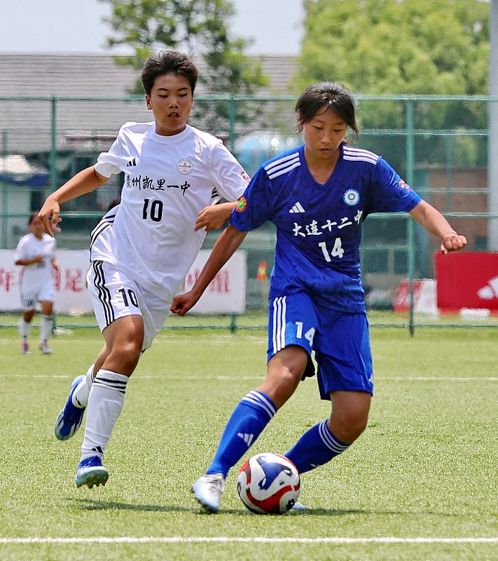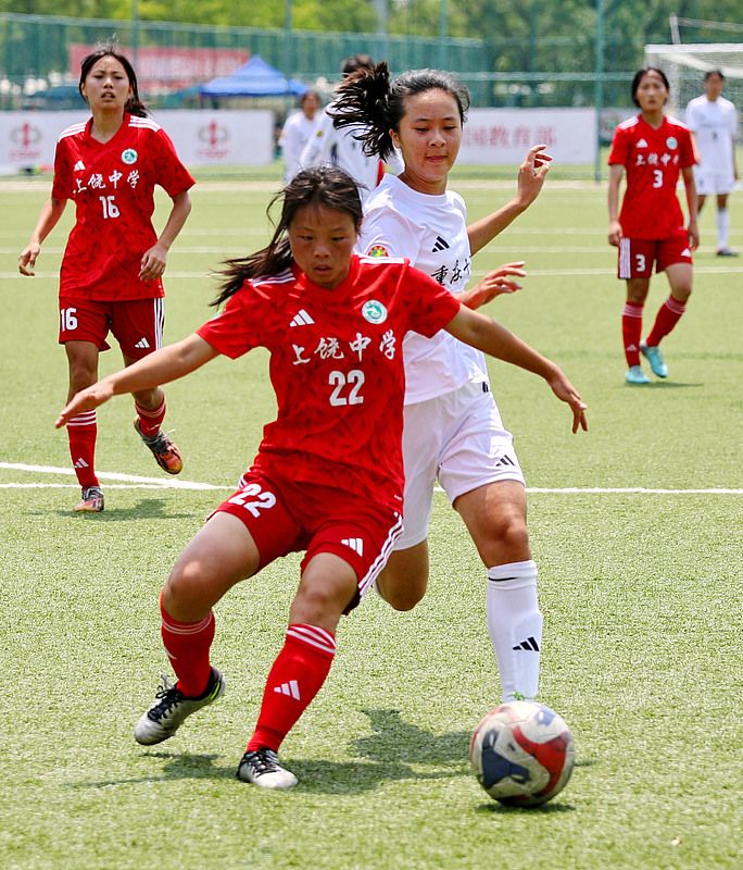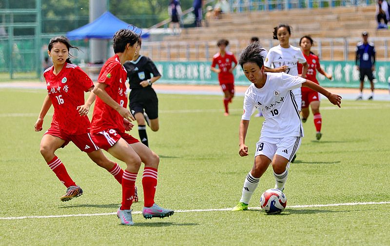 2025年6月13日,河北秦皇岛,为期10天的2024-2025全国青少年校园足球联赛高中女子组全国总决赛在位于河北省秦皇岛市的国家体育总局秦皇岛训练基地(中国足球学校)举办,共有来自全国各地的31支高中女子球队、近700人参赛。参赛选手正在比赛中。