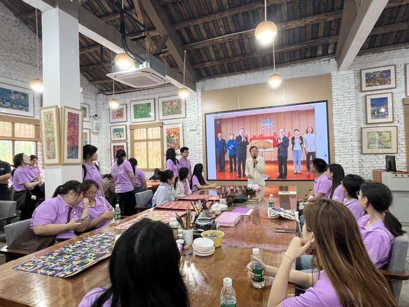 青马学员走进当地画室,与画工们展开交流,聆听他们从“田间地头”到“艺术创作”的转型故事。画工们将土家族文化元素与乡土风情融入创作,描绘出新时代土家人民的美好生活画卷,展现了乡村文化振兴的蓬勃活力。