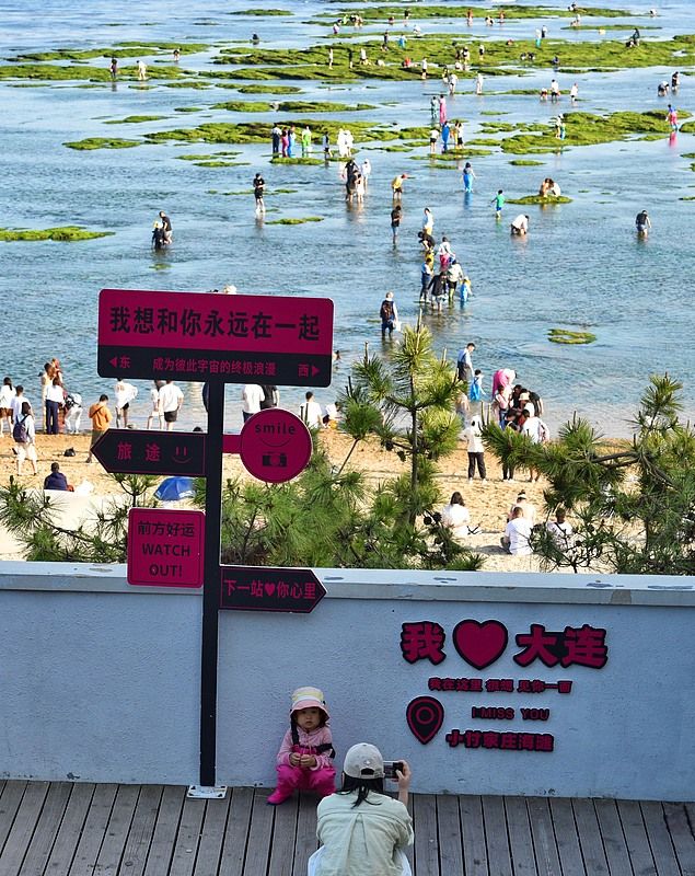 2025年6月12日,辽宁大连,游客在海滩拍照。