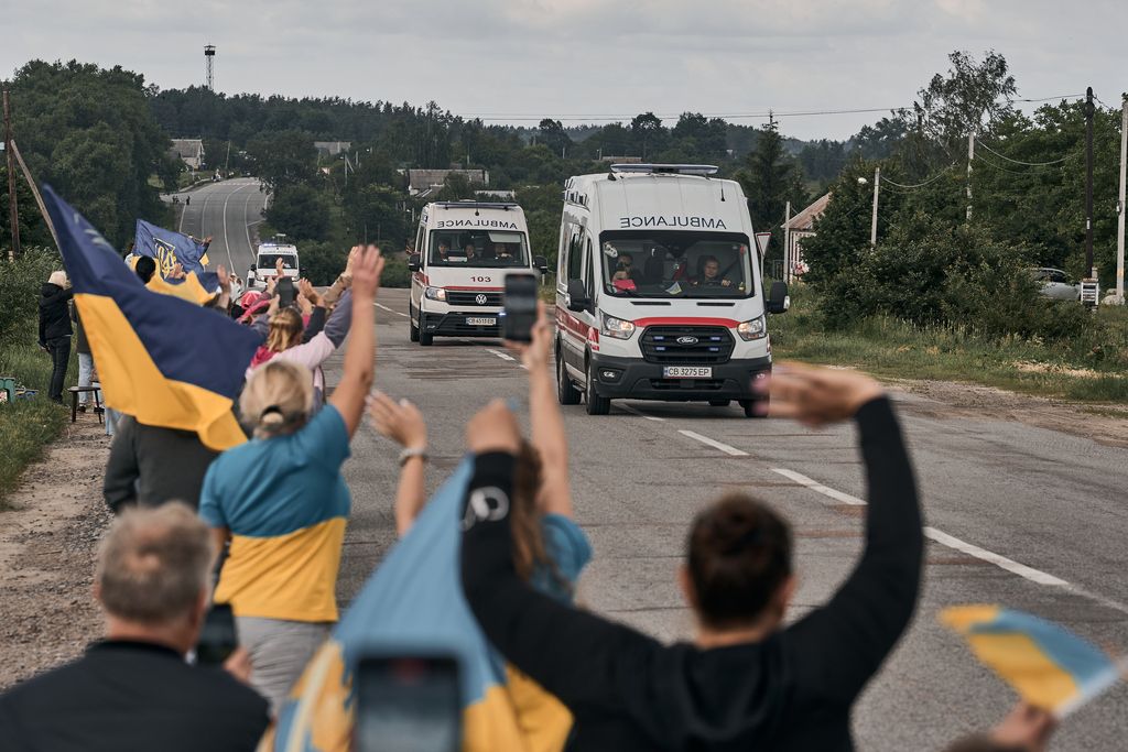当地时间2025年6月14日,乌克兰,在第66次战俘交换中获释的乌克兰军事人员返回乌克兰。作为乌克兰和俄罗斯代表团在土耳其伊斯坦布尔达成的新战俘交换协议的一部分,乌克兰已接回第四批军事人员,其中大部分自2022年以来一直被俄罗斯关押。根据乌克兰最高拉达人权专员德米特罗·卢比涅茨的说法,此次交换侧重于特定类别的囚犯:25岁以下的年轻军人、重伤员和健康状况不佳者。