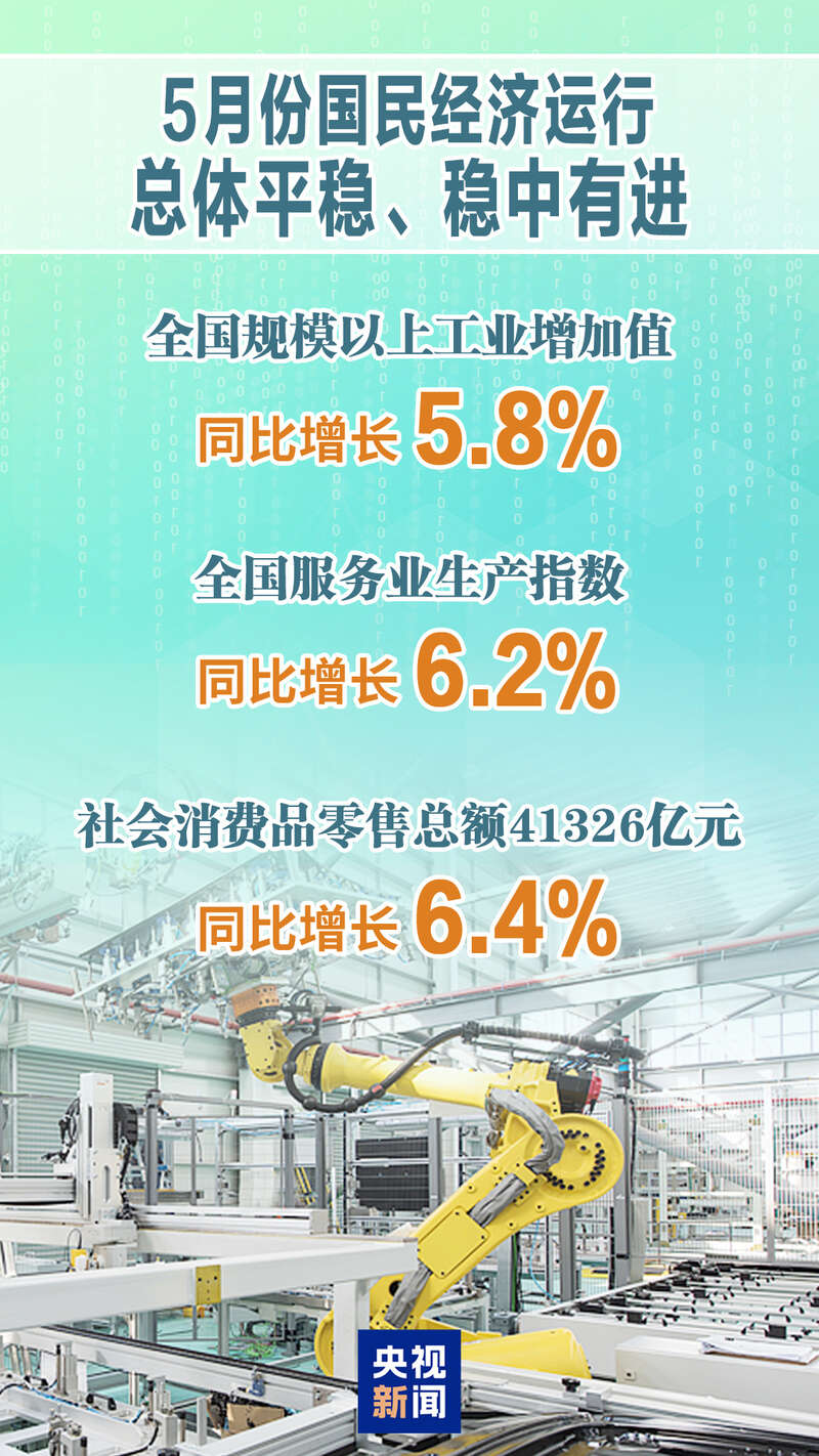 总的来看,5月份,随着政策组合效应持续释放,稳经济促发展效果显现,国民经济保持总体平稳、稳中有进发展态势,充分展现了我国经济的韧性和活力。