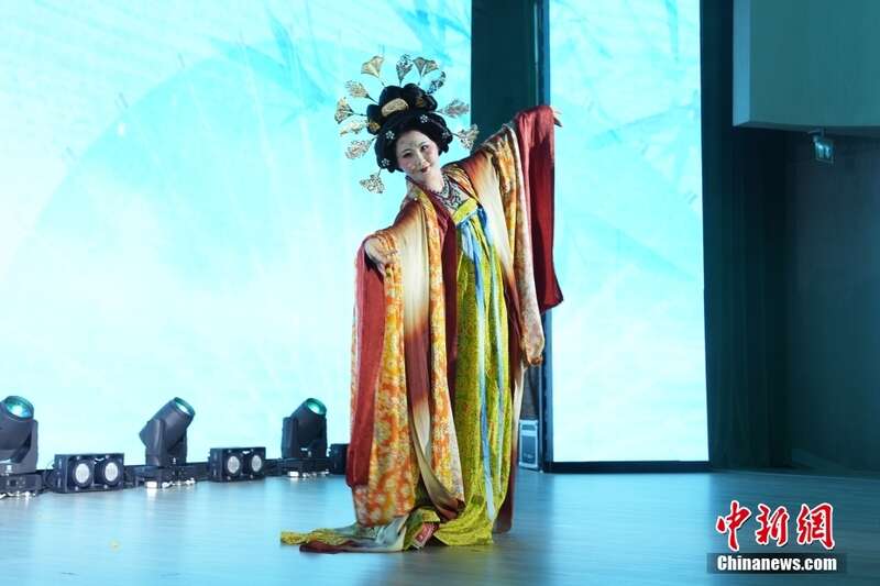 当地时间6月16日,哈萨克斯坦“中国旅游年”开幕式在位于阿斯塔纳的哈萨克斯坦国家博物馆举行。开幕式上举办了文艺演出、汉服时装秀、非遗体验等活动。图为汉服时装秀演出。