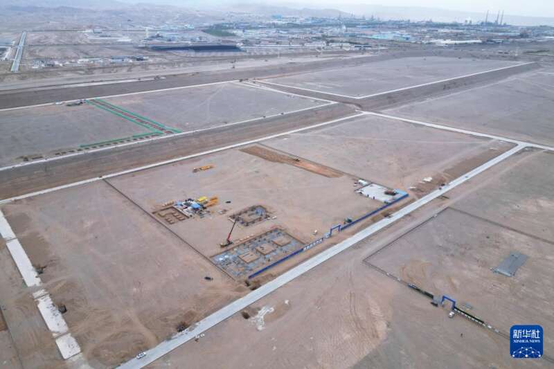 在甘肃省玉门市老市区化工园区,甘肃巨化高性能硅氟新材料一体化项目建设正酣(2025年5月21日摄,无人机照片)。新华社记者 张智敏 摄