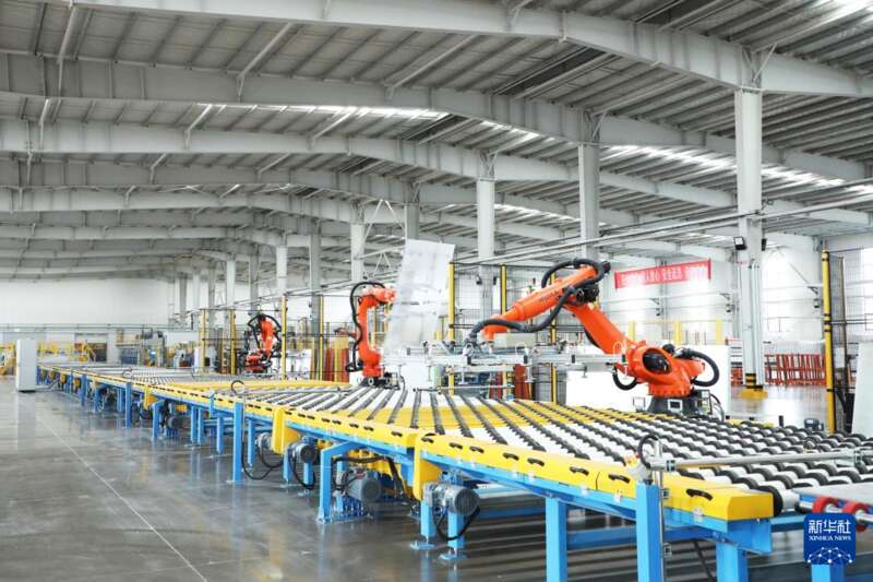这是2025年5月22日拍摄的甘肃凯盛大明光能科技有限公司的光伏玻璃生产线。新华社记者 张智敏 摄
