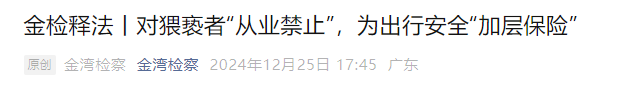 2024年,广东珠海金湾区检察院依法对一起网约车司机猥亵乘客案件提起公诉,并建议法院适用从业禁止,禁止该网约车司机五年内再从事与客运有关的职业,得到法院判决支持。