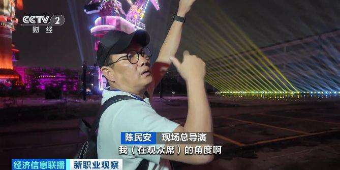 现场总导演:首先一个问题是太仰视;第二个是在这么高的时候,我们就会发现整个灯光的设计跟无人机表演是脱节的。