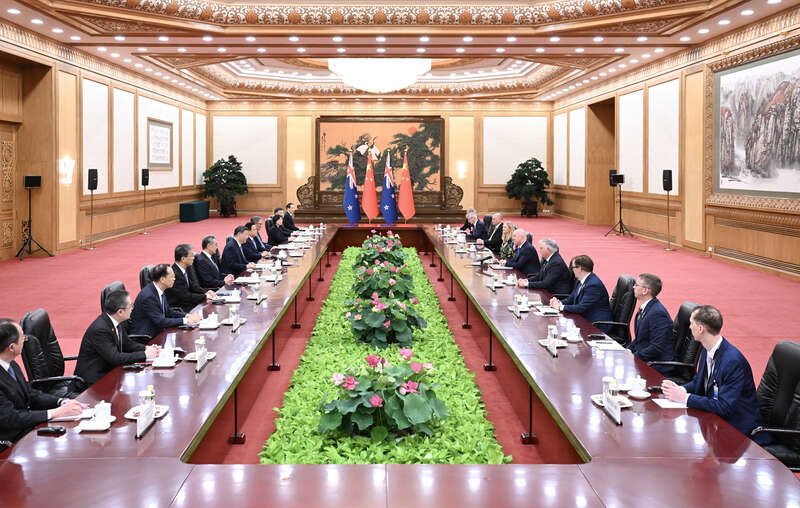 习近平强调,中新双方要把合作放在双边关系中更加突出的位置,发挥互补优势,深化贸易和投资合作,挖掘科技创新、应对气候变化、基础设施等领域合作潜力,加强教育、文化、青年、民间、地方交流,丰富双边关系内涵。中新之间没有历史恩怨纠葛,没有根本利益冲突,要相互尊重、求同存异,正确看待和处理两国差异和分歧。今年是世界反法西斯战争胜利80周年和联合国成立80周年,作为战后国际秩序的建设者和维护者,中新两国要共同捍卫以联合国为核心的国际体系,维护以世界贸易组织为核心的多边贸易体制,共同维护国际公平正义,推动国际秩序朝着更加公正合理的方向发展。