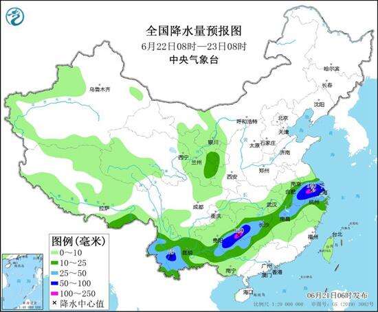 预计周末两天(6月21日至22日),贵州到长江中下游一带的强降雨仍将持续,强降雨落区东段将逐渐南压,部分地区将有暴雨或大暴雨,局地特大暴雨。此外,今天(6月21日)迎来夏至节气,南北方多地气温居高不下。特别是华北一带,今天起将迎来持续5至6天的高温天气,公众需做好防暑降温措施。