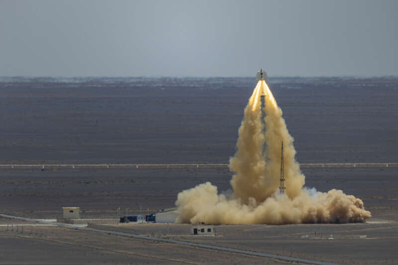 6月17日,我国在酒泉卫星发射中心成功组织实施梦舟载人飞船零高度逃逸飞行试验,标志着我国载人月球探测工程研制工作取得新的重要突破。这是继1998年开展神舟载人飞船零高度逃逸飞行试验后,时隔27年我国再度组织实施此项试验。视觉中国供图