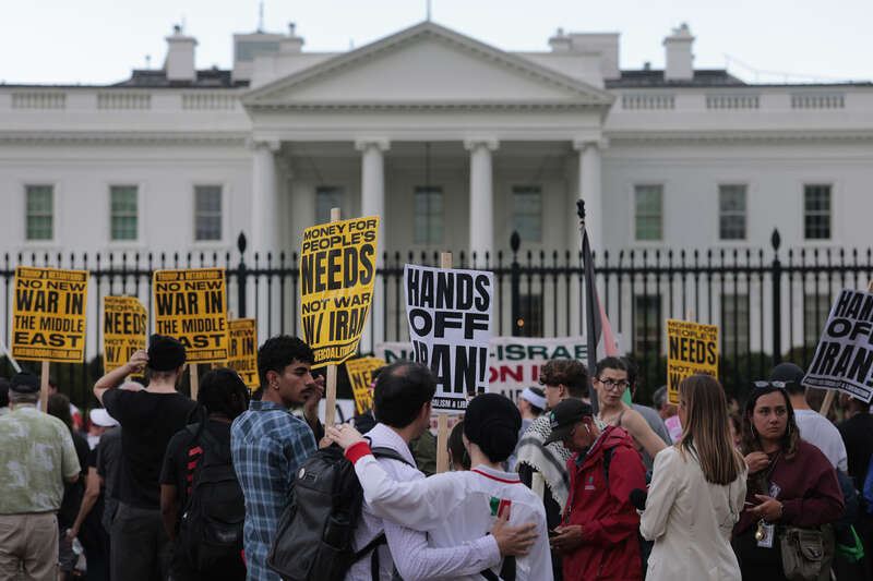 当地时间6月18日,美国华盛顿特区,抗议者举行集会,反对美国与伊朗开战。反战组织的一系列活动人士谴责以色列轰炸伊朗以及美国可能卷入日益加剧的冲突。视觉中国供图