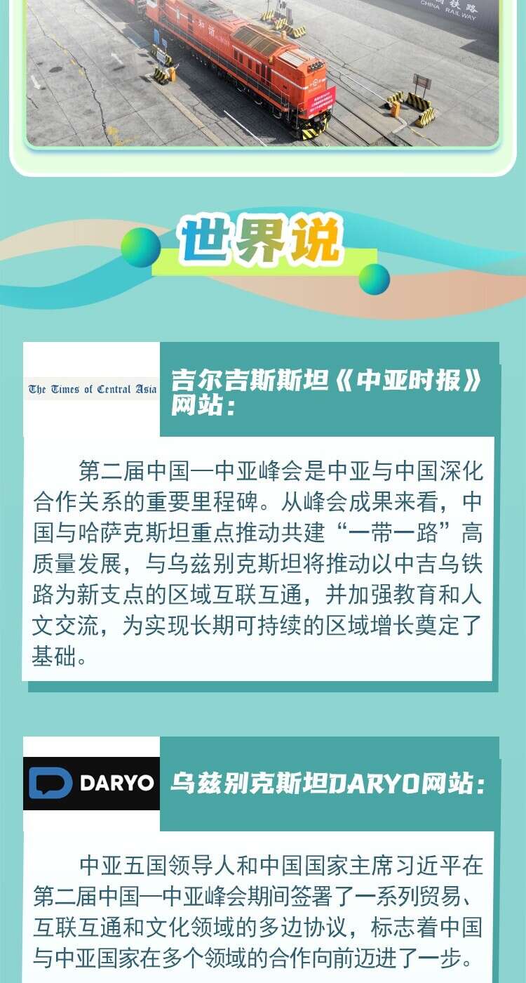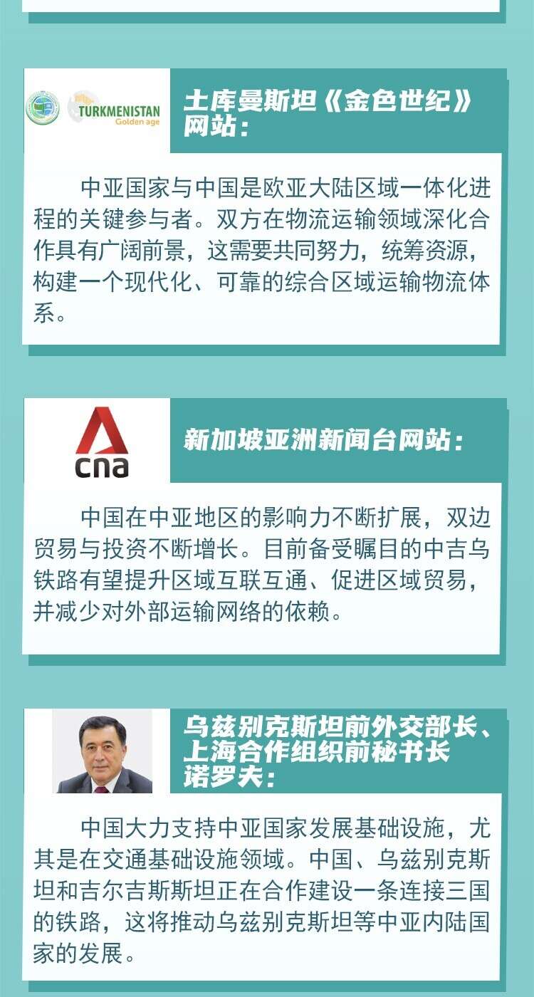 国际舆论及中亚各界人士认为,中国和中亚国家互联互通新格局有利于中亚国家提升自主发展能力,特别是在共建“一带一路”倡议框架下,中国—中亚合作在贸易、人文等多领域取得了长足进步,为区域实现长期可持续增长奠定了基础。