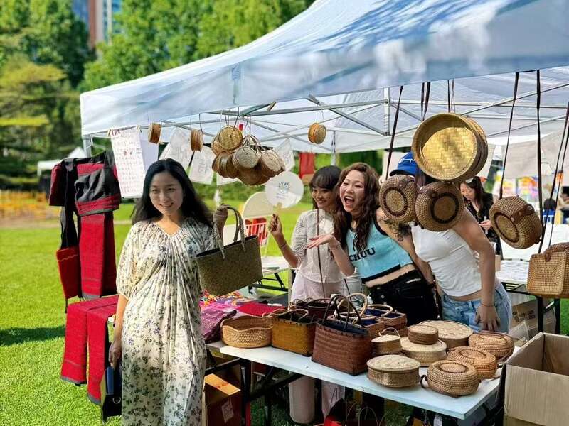 画展现场景颇族藤编、织锦义卖。主办方供图