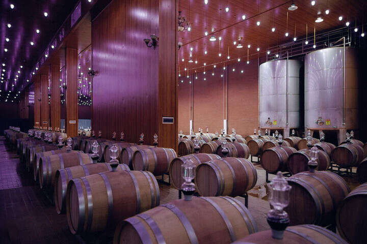 闽宁镇原隆村,一座占地10万亩的现代化酒庄依山而建,自动化设备精准调控着四季恒温恒湿的环境,2000个橡木桶整齐排列。酒窖一侧,十几米长的陈列架上摆满了国际葡萄酒大赛的获奖证书。