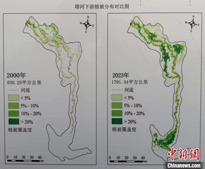 遥感数据显示,塔里木河下游植被覆盖面积已从2000年的830余平方公里扩大到2023年的1790余平方公里。不仅如此,流域内的植物种类也从生态输水前的7种增加到26种,以往难觅踪迹的水鸟、黄羊等野生动物也再次现身。
