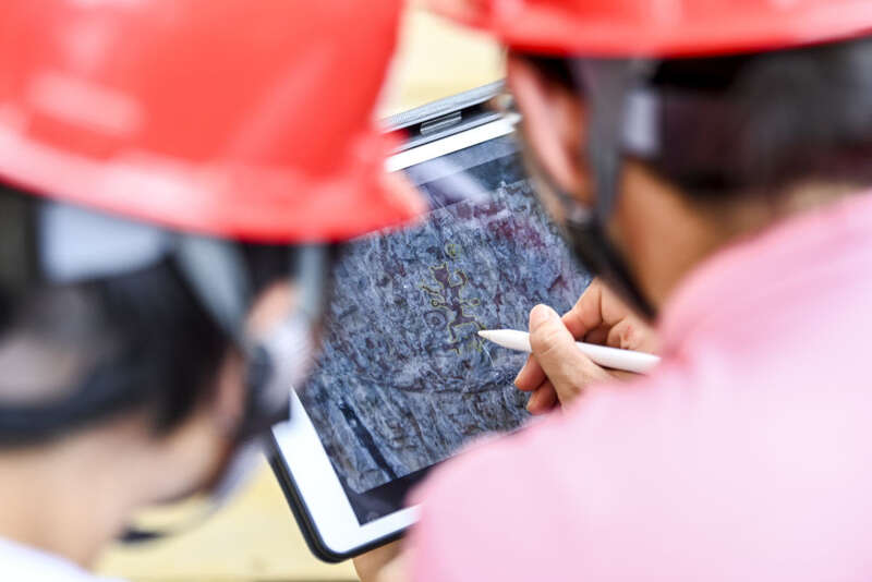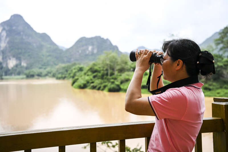 ↑6月19日,在位于广西宁明县的花山岩画监测站,工作人员进行业务讨论。