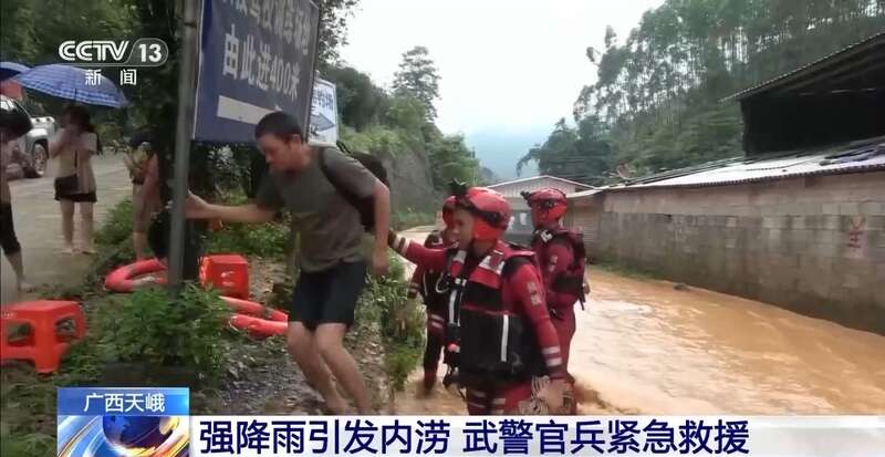 灾害发生后,武警广西总队河池支队立刻启动应急预案,迅速前往救援。