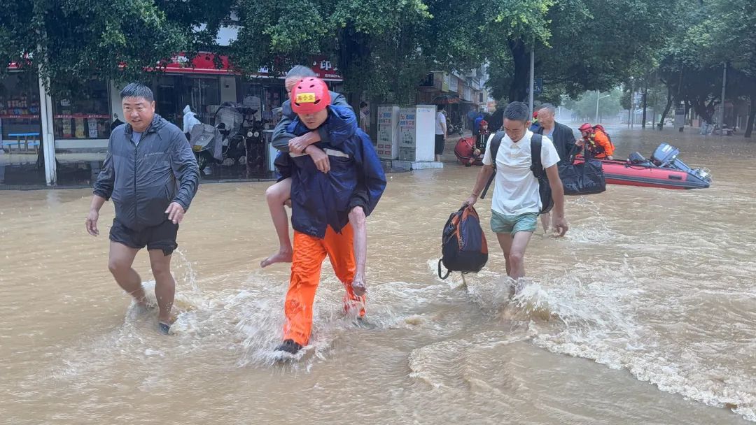 汛情发生后,榕江县消防救援大队连夜参与救援,在县城主要街道,通过舟艇、绳索等装备器材,积极转移、疏散遇险群众。
