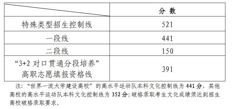 特殊类型招生录取控制分数线:物理科目组520分,历史科目组531分。