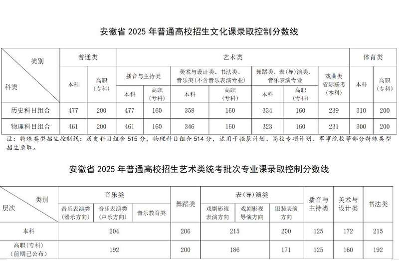 高职高专批次录取最低控制分数线:首选历史200分,首选物理200分。