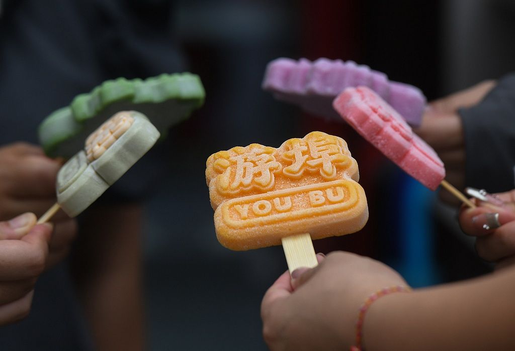 北京,夏日伏天,圆明园遗址公园,文创品“荷花雪糕”。(2022年7月16日)