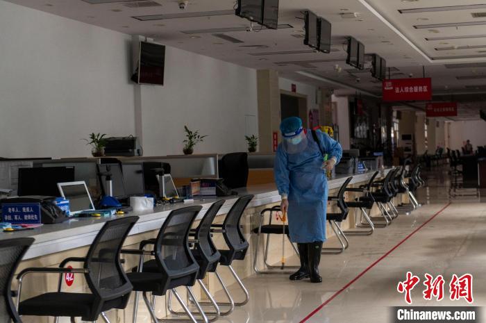 6月25日,工作人员在从江县政务服务中心对办公场所进行消杀作业。吴德军 摄
