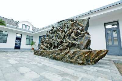 青口十八勇士纪念馆内,十八勇士作为主题的雕塑。连云港市赣榆区委宣传部供图