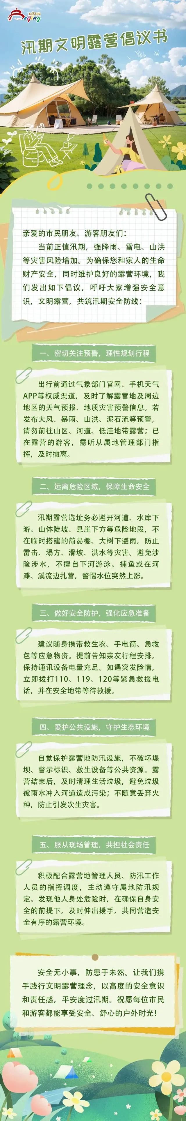 这份汛期文明露营唱倡议书请收好