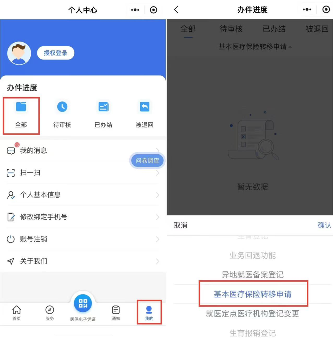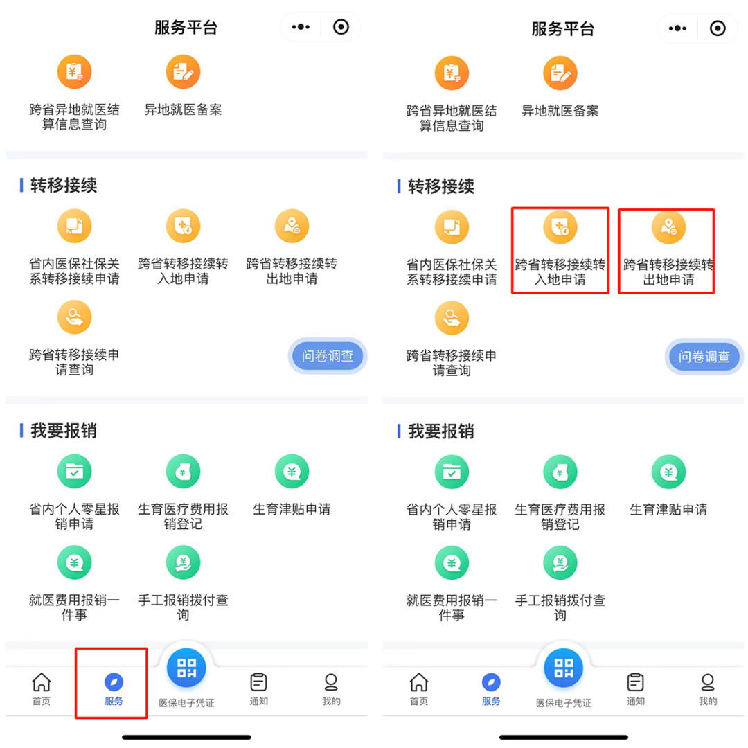 3.跨省办理:在“服务”中选择“跨省转移接续转入地申请”或“转出地申请”,填写参保地信息后提交。