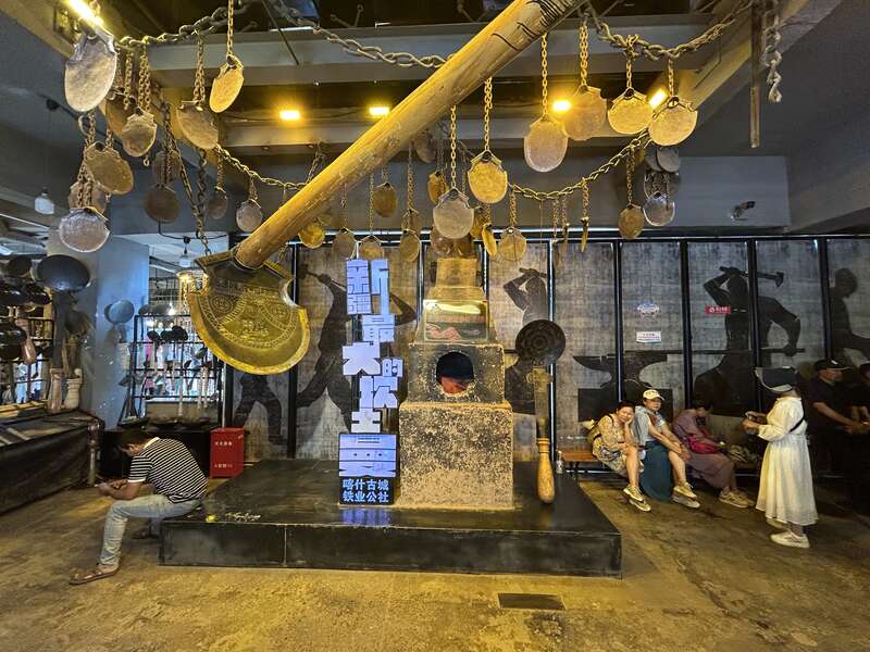 6月27日,中青报·中青网记者在参加“沿着高速看新疆”主题采访时来到了这个在古城中小有名气的铁业公社,里面游客一波接着一波,大家簇拥在打铁匠人身边打卡拍照,还有不少游客慕名而来,想要淘换几件心仪的铁器。